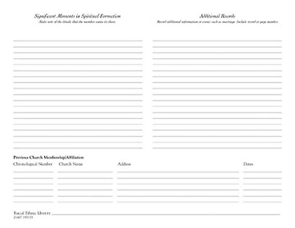 This new record is to be prepared whenever a child, youth or adult is baptized or a youth or adult is baptized and professes his or her faith so that the pastor and church can record and know that member’s story. It is a record that grows as the member takes additional steps from baptism to death.