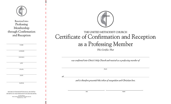 United Methodist Confirmation and Reception as a Professing Member Flat Certificate (Pkg of 26)