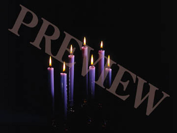 This is a download still for use in worship as a background slide showing seven purple lit Tenebrae candles with a black background, available by download purchase only.