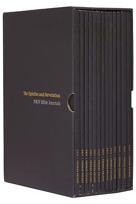 The Epistles and Revelation box set of NKJV Bible Journals includes 13 volumes covering 22 books of the New Testament: Romans, 1-2 Corinthians, Galatians, Ephesians, Philippians, Colossians, 1-2 Thessalonians, 1-2 Timothy, Titus, Philemon, Hebrews, James, 1-2 Peter, 1-3 John, Jude, and Revelation.
