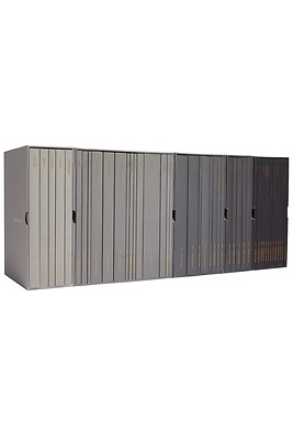 The Complete Bible box set of NKJV Bible Journals includes 45 volumes spanning Genesis to Revelation divided between 5 box sets: The Law, The Writings, The Prophets, The Gospels and Acts, and The Epistles and Revelation. Each box set is distinguished by its own shade of blue-gray, creating a stunning display for your shelf.