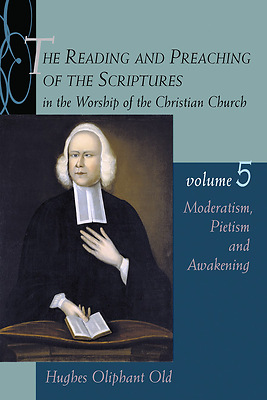 The Reading and Preaching of the Scriptures in the Worship of the Christian Church is a multivolume study by Hughes Oliphant Old that explores the history of preaching from the words of Moses at Mount Sinai through modern times. In Volume 5, Moderatism, Pietism, and Awakening, Old brings the story of preaching up through the eighteenth century, showing how, after the tumultuous age of the Reformation, preaching in the eighteenth century was driven in several very different directions. The book's first chapter considers moderatism, an inevitable reaction against the high tensions of the Reformation and Counter-Reformation. In the second chapter Old discusses pietism, examining the contributions of Philipp Jakob Spener, Theodorus Jacobus Frelinghuysen, John Wesley, George Whitefield, Samuel Davies, and other preachers. The remaining seven chapters delve into a variety of national or denominational schools of preaching."