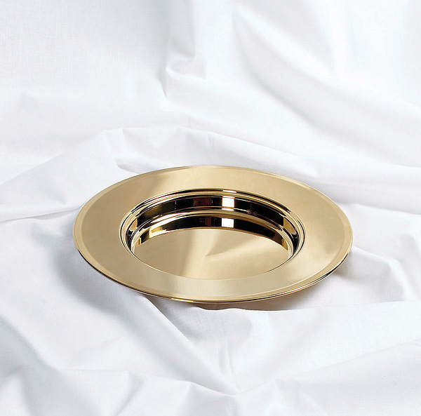 RemembranceWare® Traditional, brass-colored stainless steel communion Bread Plate is made of the same high-end, food grade stainless steel as are all RemembranceWare® pieces. It achieves it’s unique brass hue through a multi-step finishing process. . This Bread Plate is used for serving bread where a small number of plates are needed. The Bread Plate is standard size (1 1/8" high and has a diameter of 10 1/8"). It has a smooth, flat rim for passing from one hand to another. Edges are double rounded to ensure a smooth and safe feel to this piece. RemembranceWare® pieces are easily cleaned with mild soap and water and a soft cloth. This piece carries a 5-Year Guarantee and is beautifully boxed.