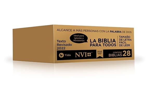 La Biblia NVI a un bajo costo y con un tamaño de letra legible, es ideal para iglesias y ministerios que compran grandes cantidades; disponible además en un paquete con 28 unidades. Esta Biblia incluye un plan de salvación, así como encabezados útiles, es perfecta como obsequio y para consulta personal.