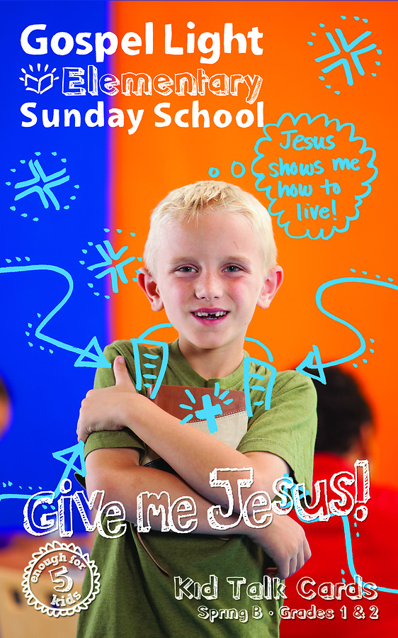 These fresh, new Kid Talk Cards are sized to fit in a standard kid’s Bible. Kid Talk Cards provide kid-tested memory-builders for each lesson of Gospel Light’s new Give Me Jesus Sunday School. Each card helps teachers review the Bible story, and then to take the next step: applying the Bible truth to everyday life. The lesson object is pictured as well as the lesson's Bible verse. Activities on the cards have been designed for beginning readers and writers. Each pad contains enough Kid Talk Cards for five children for the quarter.