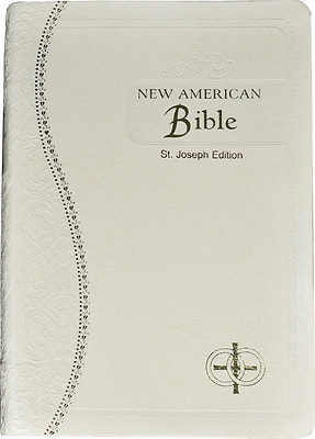 The popular Medium-Size Gift Edition Marriage Bible, a St. Joseph New American (Catholic) Bible from Catholic Book Publishing, comes with a marriage certificate. It contains the complete Old and New Testaments in easy-to-read type and a Family Record, as well as many helpful aids for easy Bible reading, including new maps and full-color illustrations. The beautiful and elegant features of this high-quality, medium-size (5-1/2\" x 8\") St. Joseph New American Bible include supple material, blind embossing, foil stamping, precise stitching, and decorative gilding to provide an exquisite and unique package for the Word of God. Flexible white imitation leather cover with a gold stamped Cana Cross. An unparalleled Catholic Bible gift from Catholic Book Publishing.