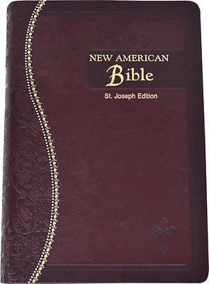 The popular Medium-Size Gift Edition of the St. Joseph New American (Catholic) Bible from Catholic Book Publishing contains the complete Old and New Testaments in easy-to-read type, as well as many helpful aids for easy Bible reading including new maps, full-color illustrations, and Family Record. The beautiful and elegant features of this high-quality, medium-size (5-1/2\" x 8\") St. Joseph New American Bible include supple material, blind embossing, foil stamping, precise stitching, and decorative gilding to provide an exquisite and unique package for the Word of God. Flexible burgundy imitation leather cover. An unparalleled Catholic Bible gift from Catholic Book Publishing.