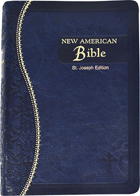 The popular Medium-Size Gift Edition of the St. Joseph New American (Catholic) Bible from Catholic Book Publishing contains the complete Old and New Testaments in easy-to-read type, as well as many helpful aids for easy Bible reading including new maps, full-color illustrations, and Family Record. The beautiful and elegant features of this high-quality, medium-size (5-1/2\" x 8\") St. Joseph New American Bible include supple material, blind embossing, foil stamping, precise stitching, and decorative gilding to provide an exquisite and unique package for the Word of God. Flexible blue imitation leather cover. An unparalleled Catholic Bible gift from Catholic Book Publishing.
