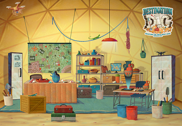 The VBS 2021 Supersized Backdropis three 3' x 6' panels that will cover your walls and easily transform any environment!VBS 2021 Supersized Backdrop ·Available in a digital format ·Order one for your VBS ·Additional resources: ·VBS 2021 Dig Site Tent ·VBS 2021 Whirleys ·VBS 2021 Rotation SignsLifeWay’s 2021 VBS: Destination Dig: Unearthing the Truth About Jesus takes kids to present-day Israel to become junior archaeologists and study tangible pieces of the past to learn about who Jesus is and why He came. Along the way, they will uncover the truth of Jeremiah 29:13 that God reveals Himself to us when we seek and search for Him with all our hearts.