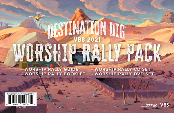 The VBS 2021 Worship Rally Pack is all you need for Worship Rally in one convenient pack! (Order extra copies separately.)Includes: ·Worship Rally Guide ·Worship Rally DVD Set ·Worship Rally CD Set ·One Worship Rally BookletVBS 2021 Worship Rally Pack ·Available in a digital format ·Additional resources: ·Worship Rally Guide ·Worship Rally DVD Set ·Worship Rally CD SetLifeWay’s 2021 VBS: Destination Dig: Unearthing the Truth About Jesus takes kids to present-day Israel to become junior archaeologists and study tangible pieces of the past to learn about who Jesus is and why He came. Along the way, they will uncover the truth of Jeremiah 29:13 that God reveals Himself to us when we seek and search for Him with all our hearts.