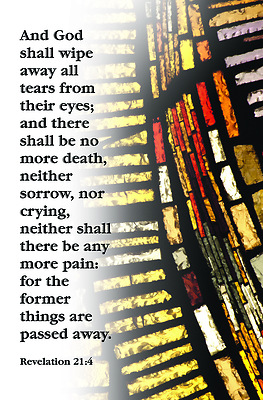 This Broadman bulletin features a beautiful 4 color image and words from thescripture, Revalation 21:4. This bulletin can be used for a funeral service or in a weekly worship service. A free on-line template is available at www.bhpublishing group.com. All Broadman bulletins are sold in packages of 100 bulletins.