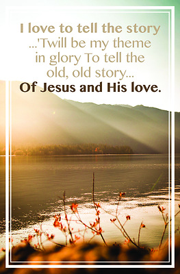 This Broadman bulletin is designed for general worship services and features verse 1 from the hymn, "I Love To Tell The Story". A beautiful 4-color image with inset adorns this cover. A free on-line template is available at www.bhpublishing group.com. All Broadman bulletins are sold in packages of 100 bulletins.,