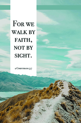 This Broadman bulletin is designed for general worship services and features scripture from, 2 Corinthians 5:7 in KJV translation. A beautiful 4-color image with inset adorns this cover. A free on-line template is available at www.bhpublishing group.com. All Broadman bulletins are sold in packages of 100 bulletins.