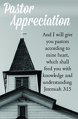 This Broadman bulletin is designed to help in honoring Pastors. The beautiful 4-color image adorns this cover and features "We Love Our Pastors" and the scripture from Jeremiah 3:15 in the KJV translation. A free on-line template is available at www.bhpublishinggroup.com/supplies-templates/. All Broadman bulletins are sold in packages of 100 bulletins.