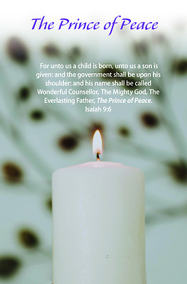 Broadman Church Supplies Advent Bulletin is for the fourth week of the Advent season. The beautiful 8 1/2" x 11" sized bulletin features the 5 candles used to celebrate the Advent season featuring the name,"The Prince of Peace", and scripture from Isaiah 9:6 in the KJV translation. All