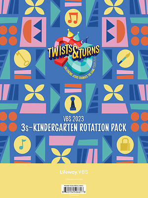 3s-Kindergarten Rotation Pack contains recreation cards and booklets with crafts, music, and missions experiences designed especially for preschoolers and kindergartners. Simply hand out the booklets to your preschool rotation leaders. Order one Rotation Pack per church.VBS 2023 3s-Kindergarten Rotation Pack Includes: ·Four craft choices per day–choose from ideas for free painting, drawing, organized crafts, or a craft option tied to the Bible story ·Music For Preschoolers CD ·Instructional videos for SIX preschool song. And a Preschool Worship Rally outline! This DVD-ROM also includes printable teaching aids and lead sheets. ·Short missions videos that highlight two sets of missionaries throughout the week ·Indoor and outdoor recreation games to choose from each day ·Also available in a digital format ·Order one for each class ·Additional resources: ·VBS 2023 3s-Pre-K Leader Guide ·VBS 2023 Multi-age Preschool Bible Study Leader Guide ·VBS 2023 Memory Maker ·VBS 2023 Preschool Activity BookTwists and Turns VBS is a fantastical celebration of how following Jesus changes the game. Spin the spinner, beat the clock, skip ahead, level up, and play to win! Kids will have fun with games while learning that Jesus guides us through all the twists and turns of our lives. In the end, they'll find that even when they mess up it is never "game over."