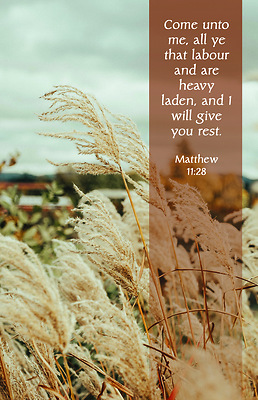 Funeral Bulletin is adorned with a beautiful 4-color image, and is designed for use during a Funeral celebration service any time of the year. The featured verbiage is Matthew 11:28 from the KJV translation of the Bible.