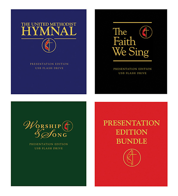 The United Methodist Hymnal. The Cross & Flame and photographic backgrounds are used and are interchangeable.