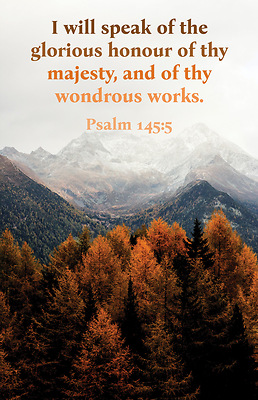 Broadman Church Supplies General Worship Bulletin is adorned with a beautiful 4-color image, and is designed for use during a General Worship celebration service any time of the year. The featured verbiage is Paslm 145:5 from the KJV translation of the Bible. All