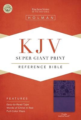 An ideal selection for pulpit use or for the vision impaired, the "KJV Super Giant Print Reference Bible" includes 18-point type that's twice as large as most standard Bibles. Among the other features are a four-color presentation page section, eight four-color maps, two-column text setting, the words of Christ highlighted in red type, Bible Study Helps (How to Read the Bible Through; A Short History of the Bible; Favorite Readings; Harmony of the Life of Christ; Giant Print Concordance), and a two-piece die-cut gift box.