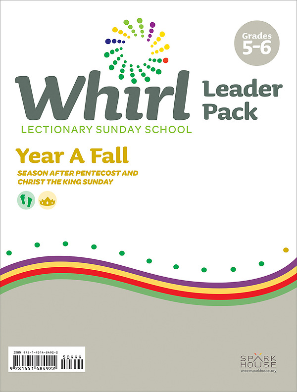 The Whirl Leader Guides make preparing and presenting lessons easy and rewarding. They provide everything leaders need to engage kids with the lectionary season and lesson activities and discussions. Lessons are separated into four sections: Welcome, Hear, Respond, and Launch. The seasonal color and icon help leaders know where they are in the lectionary at a glance. The front of the leader guide addresses the same three questions every week to give leaders a quick context to teach that week’s lesson: what’s happening in the story, why does it matter for kids, and what is the lectionary connection. Scripted, bolded text in each section helps leaders easily know exactly what to say as they lead kids through the lesson. Bulleted questions and numbered step-by-step directions keep the lesson simple and organized for leaders to follow.