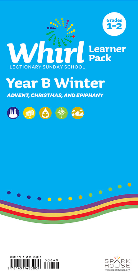 Leaflets help kids process the Bible lesson and keep them connected to church life. • The seasonal color and icon orient kids to the lectionary Sunday and church season each week. • The front panel serves as an opening activity during the WELCOME section each Sunday, while the larger square helps kids personalize the lesson during the RESPOND part of the Whirl Lectionary lesson. • The back of each leaflet serves as a take-home piece with seven suggestions for families to dive deeper into the Bible lesson and church season throughout the week.