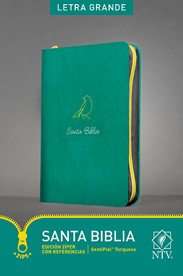 La Edición zíper con referencias, letra grande incluye introducciones a cada libro, extensas referencias cruzadas en la columna central, el sistema de estudio de palabras NTV con un diccionario/índice de términos en hebreo y en griego, una concordancia y tres mapas a todo color. Esta edición de letra grande muestra las palabras de Cristo en rojo, incluye una página de presentación e índice, además de un cierre de cremallera alrededor de toda la cubierta. El tamaño de letra es de 9.5 puntos.