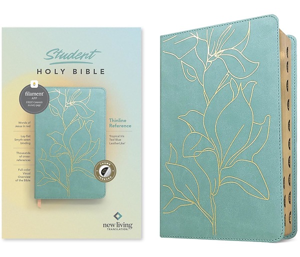 NLT Student Bible, Thinline Reference, Filament-Enabled Edition (Leatherlike, Tropical Iris Teal Blue, Indexed, Red Letter)