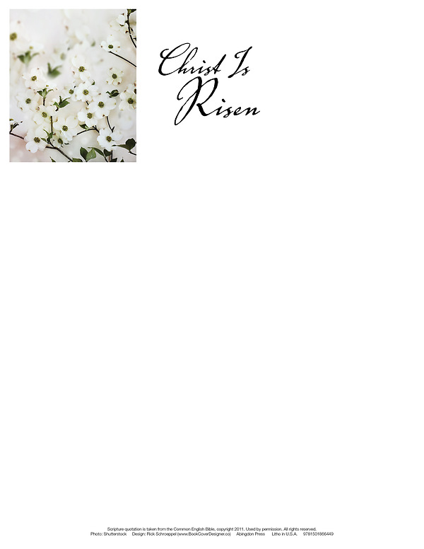 The delicate white petals of the dogwood blooms adorning this attractive bulletin are a favorite Easter symbol for many Christians. The scripture invites us to celebrate this day! Let this letterhead and its matching pieces convey a message of joy to members and visitors alike on Easter morning. The standard letterhead size of 8.5" x 11" makes it a great stationery to share a special message for the season. It comes in packages of 50. This letterhead is part of a matching set along with regular and large size bulletins and an offering envelope. Use Abingdon's window envelopes; the letterhead design shows through to add festive color to the mailings.