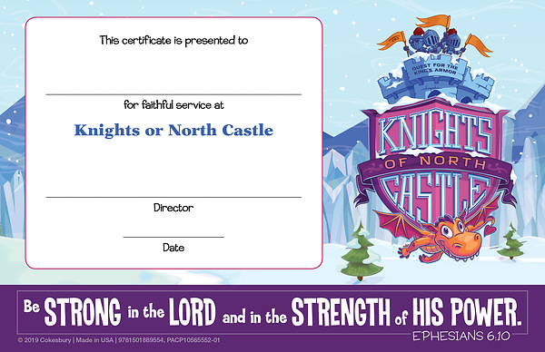 Vacation Bible School (VBS) 2020 Knights of North Castle Leader Recognition Certificates (Pkg of 12)