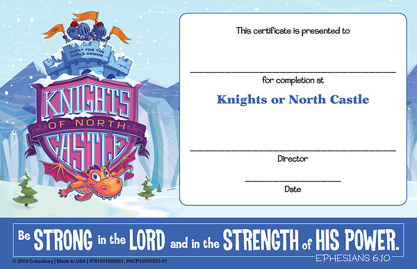 Vacation Bible School (VBS) 2020 Knights of North Castle Student Certificates (Pkg of 48)