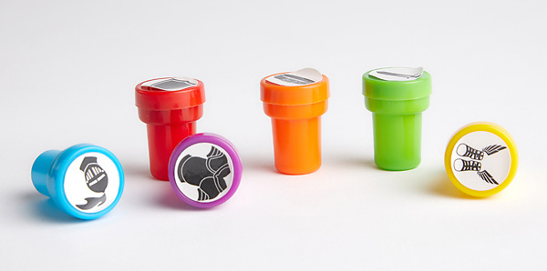 Knights of North Castle VBS! Each of these 6 self-inking stamps represent a piece of the Armor of God. Stamps include the Belt of Truth, the Breastplate of Justice, the Shoes of Peace, the Helmet of Salvation, the Shield of Faith, and the Sword of the Spirit. Ink colors are orange, yellow, red, green, blue, and purple.