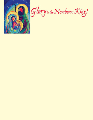 The declaration from Charles Wesley and colorful artistic depiction of the Holy Family appears on this letterhead. It is a great stationary to use when sharing a message with your congregation this Christmas season. This letterhead is 8.5" x 11" printer paper available in packages of 50. It is part of a matching set along with offering envelopes and your choice regular or large size bulletin. Designed for folding so the design appears in the window of a #10 Window Envelope.