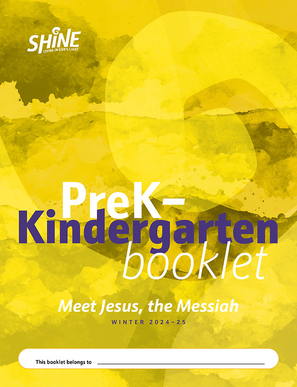 The PreK-Kindergarten Student Booklet provides a full quarter of colorful, fun activities for children ages 3-6. Each session has one tear-off page to send home each week. Order one for each child, one for each teacher, plus one or two extras to have on hand for guests. Shine: Living in God’s Light—preparing children, youth, congregations and families to love Jesus, grow in faith, change the world.