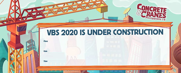 The VBS 2020 Promotional Banner is a weather-resistant, double-strength vinyl banner for curbside VBS promotion. Measures an impressive 35" x 87" with metal grommets in each corner for easy hanging. Add your VBS dates and other information using a wide-tipped permanent marker. (Marker not included.) Also available in a digital formatLifeWay’s 2020 VBS: Concrete & Cranes: Building on the Love of Jesus shows kids the foundation that lasts. As kids explore a world of concrete and cranes, rivets and rebar, bulldozers and backhoes, they will learn to build their faith on Jesus as they uncover the truth that He who began a good work will be faithful to carry it on to completion.