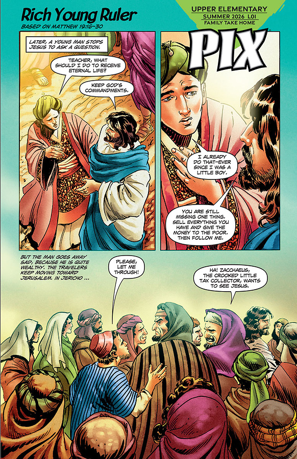 Send home this time-honored eight-page booklet with all-new illustrated Bible stories. Pix includes stories, comics, crafts, and more that reinforce each lesson. Plus a special Faithsteps section with meaningful, lesson-related activities for families. Need one per student.