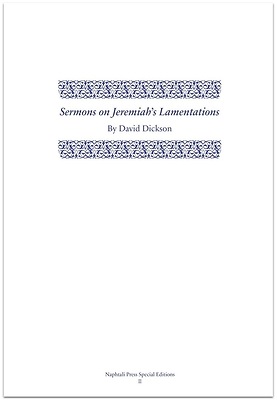 This rare, never-before-published volume powerfully expounds a neglected book of Scripture. David Dickson carefully applies Lamentations in a time not only of epidemic disease, international turmoil, economic devastation, and persecution but also of revival. There are clear parallels with our own time, particularly the unprecedented circumstances of upheaval in the nations of the world. Dickson also deals with church decline and argues that its afflictions should cause us great sorrow. Yet he also shows how Lamentations gives those with such heavy hearts words with which to sorrow in hope. This edition has been carefully produced from notes taken by a member of Dickson's congregation.