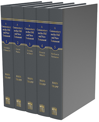 John Trapp's Commentary on the Old and New Testaments, a classic Puritan exposition of Scripture, combines explanation of the text, articulation of doctrine, discussions of controversies, and clarification of cases of conscience. Full of colorful paraphrases and captivating illustrations, Trapp's pithy style makes him highly quotable and a handy resource preachers. As a bonus, this set contains four practical books by Trapp that are appended to various volumes: