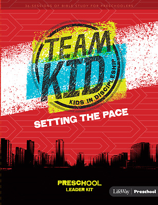 TeamKID: Setting the Pace - Preschool Leader Kit provides a 36-week discipleship study for preschoolers that emphasizes major books, stories, and truths of the Bible. The
