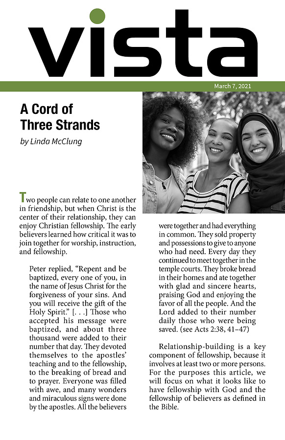 Discover spiritual renewal and a refreshing look on life! Inspirational, yet thought provoking, Vista is a weekly eight-page take-home that coordinates with the Bible study lesson and provides encouraging real-life stories that directly relate to the principles being studied.