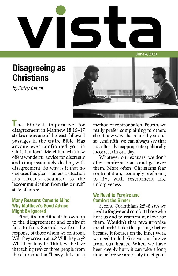 Discover spiritual renewal and a refreshing look on life! Inspirational, yet thought provoking, Vista is a weekly eight-page take-home that coordinates with the Bible study lesson and provides encouraging real-life stories that directly relate to the principles being studied.