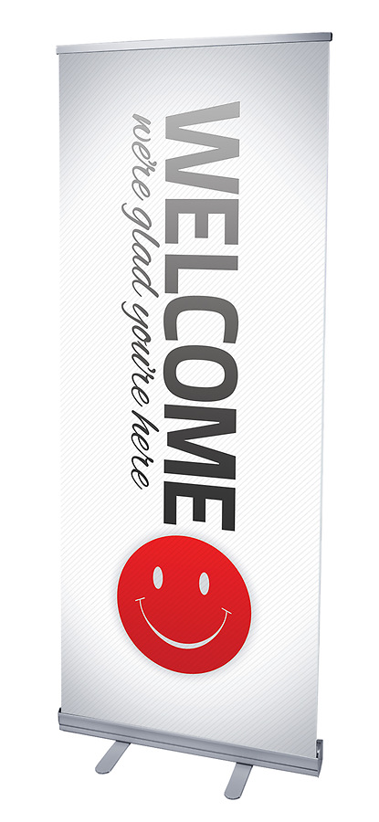The following items and their quantities are included in the kit product: Pinstripe Welcome RollUp Banner with Stand