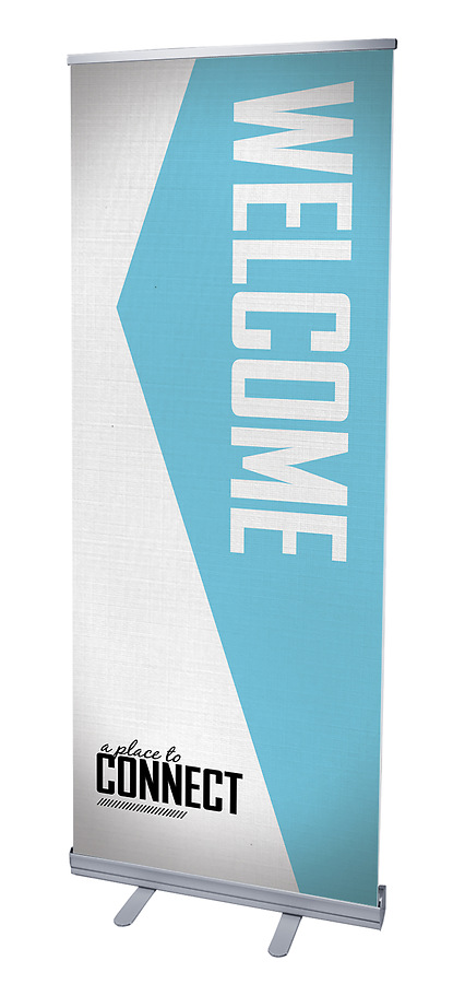 The following items and their quantities are included in the kit product: Place to Connect Welcome RollUp Banner with Stand