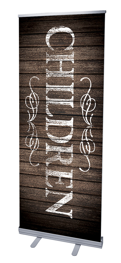 This 2' 7" x 6' 7" Roll-Up style banner with stand features attractive designs in a size that can be used almost anywhere. The height allows it to be seen above the crowd, while the small footprint allows for display in any area of your building. The 15 oz Non-Curl Vinyl used for indoor banners provides for vivid colors and eye-catching graphics even up close. One of the most versatile tools available, banners can be used in a variety of ways around your church: To invite and welcome guests, provide direction around your building, update your church’s décor and communicate your mission and vision. Also a great tool for portable churches. To clean simply wipe with a damp cloth. **typically ships in two business days after factory receipt of order**