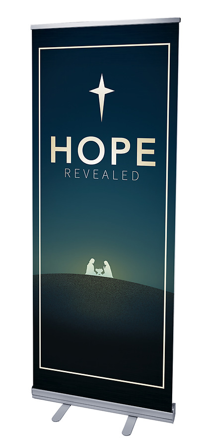 The following items and their quantities are included in the kit product: Hope Revealed Advent RollUp Banner with Stand
