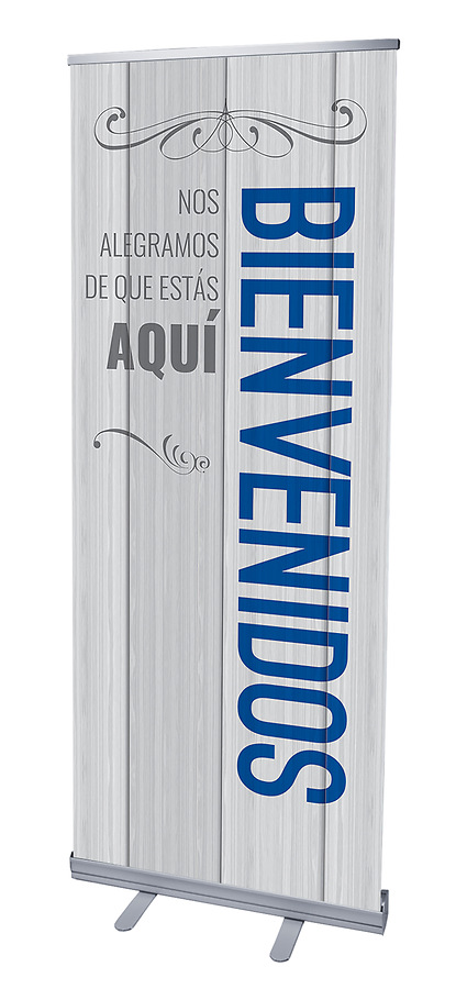 Painted Wood Welcome Spanish RollUp Banner with Stand