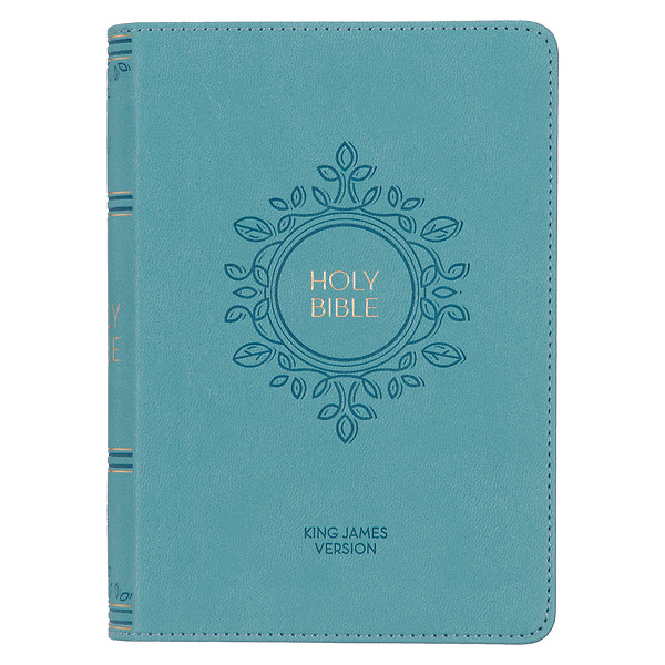 KJV Holy Bible, Compact Large Print Faux Leather Red Letter Edition Ribbon Marker, King James Version, Aqua Blue