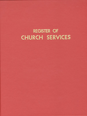 This sturdy register matches the Parochial Report Form of the General Convention Office of the Episcopal Church. Columned pages provide a day-by-day record of attendance and number of services for Sunday and Saturday evening Eucharists, weekday and private Daily Offices and other services. Space is also provided for names of celebrant or officiant and notes. Red cloth binding. 176 pages. 1,978 entries. 9” x 11”