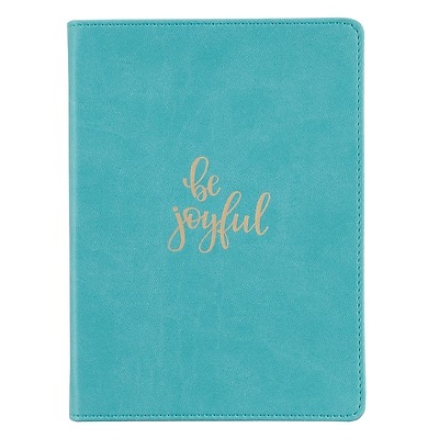 Perfect for any bubbly, cheerful girl, this Teal Handy-sized Faux Leather Journal encourages a jubilant spirit of joy. On its cover, the heat-debossed phrase, "be joyful" is written in swirling calligraphy and gold-foiled, which glitters and shines against the teal color of the leather. This notebook is part of a triadic collection of three coordinating phrases and colors: "be brave," "be grateful," and "be joyful" in lavender, pink, and teal. Every girl should understand the importance of courage, thanksgiving, and happiness, and this collection inspires girls to wear these qualities proudly. This handy-sized journal is a convenient size and can be easily carried in purses and bags. The notebook's cover is made up of Faux Leather, a material which mimics leather but with less weight and more flexibility. The inside of the book holds 240 lined and golden gilt-edged pages to match the phrase on the cover and, in the same style as the pages, a silk ribbon is attached at the book's spine to serve as a page marker. This vivid, fun collection offers stylish and bright products with coordinating colors and phrases. Other products in this collection are rose-gold keyrings and porcelain mugs. Not only is this collection perfectly suited for a lively group of three friends or relatives, but it also promotes qualities that are helpful and important for every girl to strive towards! Size: 7.2 x 5.39 x 0.63 (183 x 137 x 16mm)