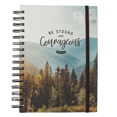 The Be Strong and Courageous Large Wirebound Journal with Elastic Closure is a stunning reminder that we are not alone in this life! Whether the sun is warmly shining down on us or a storm is blowing the trees sideways, we can trust God to provide what we need to walk through this life. This hardcover journal is great for use as a travel journal for that long-planned trip, or simply to note the adventures you encounter in daily life! The cover of the journal shows an impressive photograph of a mountain range and forest. The hardcover and wire binding allows this journal to lay flat, keeping writing comfortable while also being sturdy enough to hold up to everyday use! BE STRONG AND Courageous Joshua 1:9 A coordinating black elastic band holds the covers together, keeping the pages free from damage. The 216 interior pages have Scripture printed for additional encouragement and are lined, providing plenty of room to write. This journal is perfect for every outdoor enthusiast, from world travelers to weekend campers and anyone in between. It makes a suitable Christmas or birthday gift for your friend, brother, or sister that loves to travel-even if it's only to the nearest park. Give it along with a Strong & Courageous Camp Style Stainless Steel Mug for a fully coordinated gift. Wherever you take the Be Strong and Courageous Large Wirebound Journal with Elastic Closure, be assured that God is going with you on your journey! Realistic Nature Design Hardcover Wirebound Full-color Cover 216 Lined Pages with Scripture Attached Elastic Band Size 8.6" x 6.9" x 1" (218 x 175 x 25mm)